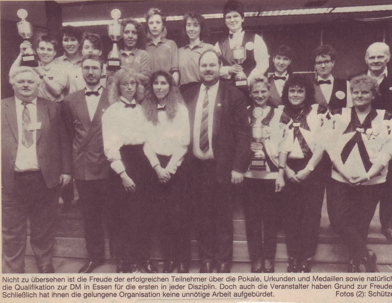 Einzelwettbewerbe: Damen Pokal Platz 4 Claudia Martens,Platz 23 Helga Martens Jugend Pokal Platz 16 Andreas Kehder, Platz 19 Rüdiger Esser, Damen 8 Ball, Platz 12 Claudia Martens, Jugend 8 Ball, Platz 3 Andreas Kehder, Jugend 14/1, Platz 13 Andreas Kehder